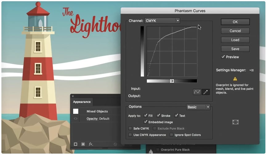 Phantasm bridges the gap between Adobe Illustrator and Photoshop, so you can easily adjust vector artwork, text, effects, and embedded images with curves and other essential controls without using two programs.
