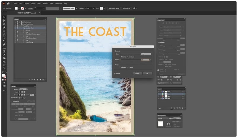 PosterPress is a finely crafted plugin for Illustrator by Ian Barnard that allows you to make your designs look like old-time travel posters or vintage postcards.