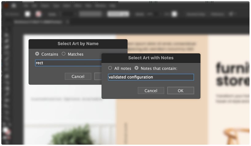 - Select art by name or by note content: Choose objects by the name displayed in the Layers panel. Search for objects with notes or with specific text within their notes.