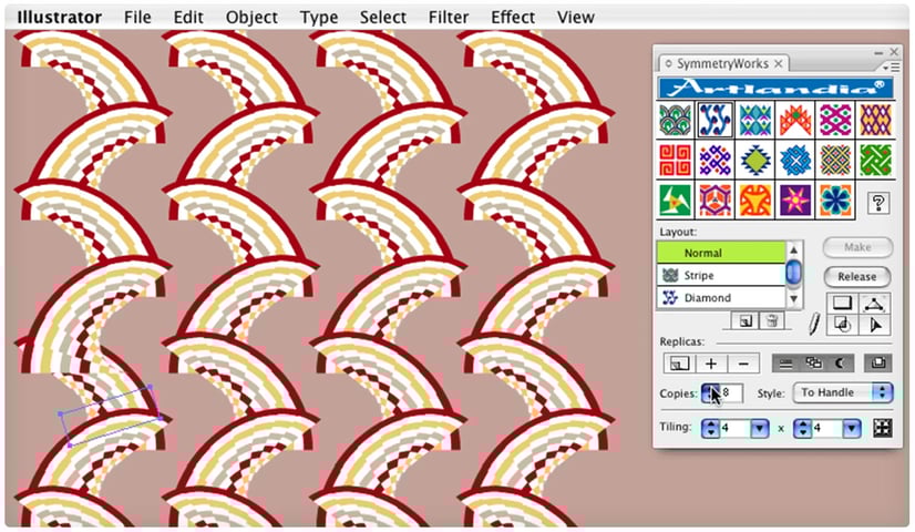 Artlandia SymmetryWorks is a specialized plugin for making repeat patterns in Adobe Illustrator a hundred times faster, better, and more imaginatively.
