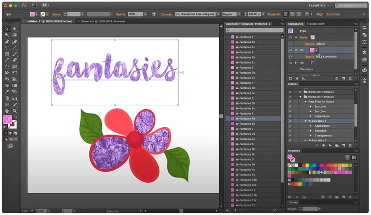 Watercolor Fantasies Quick Styles includes 140 seamless raster pattern swatches for Illustrator. Each main pattern comes in a light and intense style, and 30 patterns have an extra “fantasy style.” If you love watercolor, you’ll love designing with this plugin.