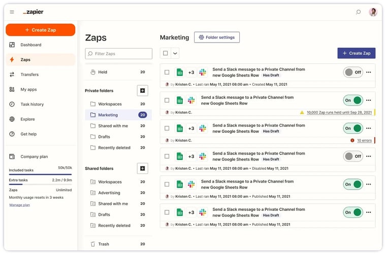 Zapier is like a digital fixer for your workflow, connecting and automating tasks across over 6,000 apps and services without the need for a developer. In just a few minutes, you can set up Interfaces, Tables, and Zaps—Zapier's term for automated workflows—to expedite virtually any task.