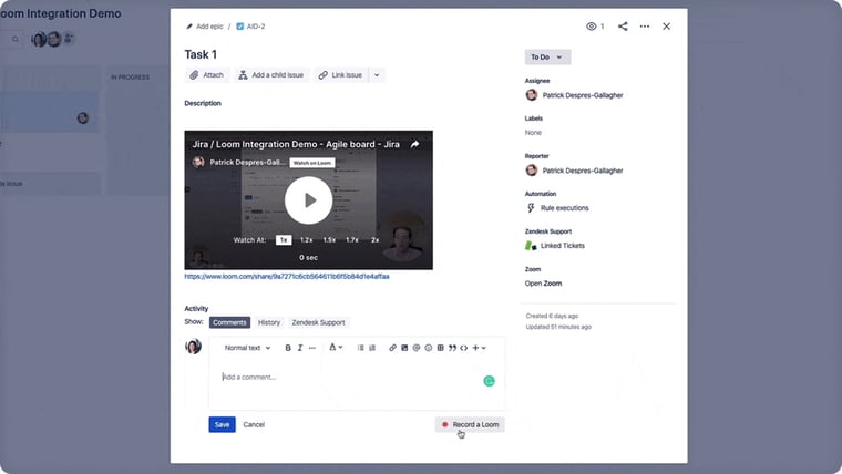 Quickly share updates or feedback through videos within Jira.