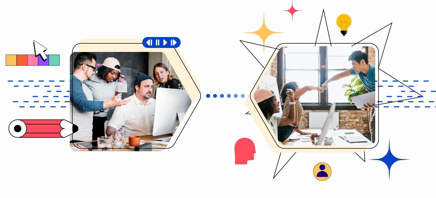 With collaborative design, every member of the team shares the entire creative design process. They add feedback directly to assets without any delays or intermediaries. The process is built on shared objectives, open communication, and making continuous improvements in response to each other.