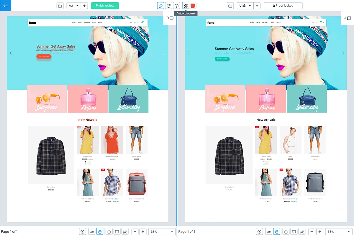 As designs move through different iterations, it’s easy to lose track of details. Version comparison means that you can see different forms of the design side by side, even returning to an earlier version if necessary. You can also track whether feedback was implemented.