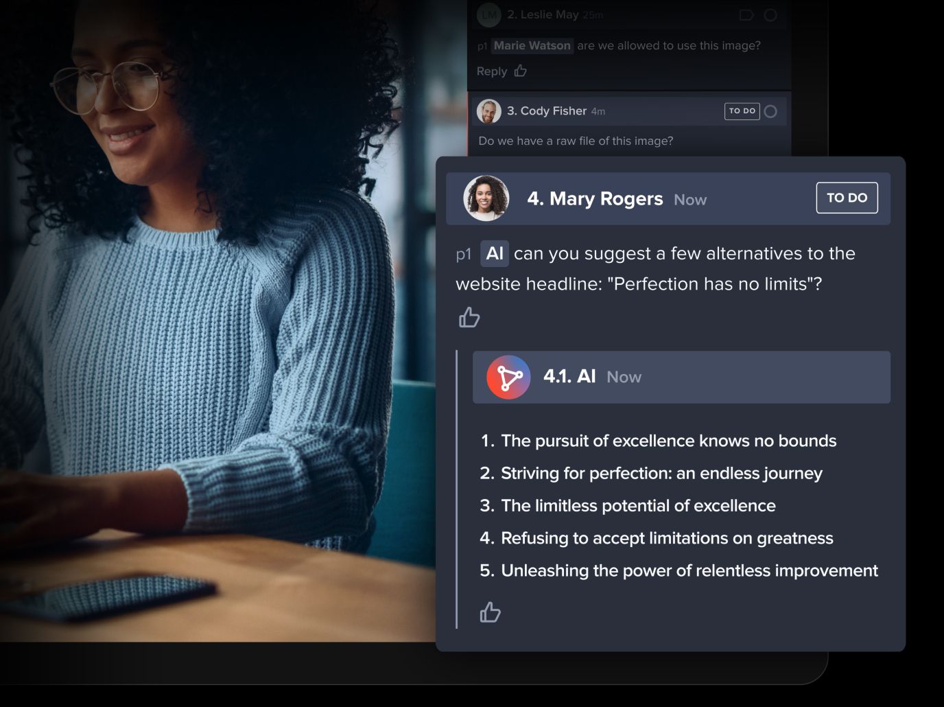 AI-powered algorithms can also suggest additional enhancements with design and creative work itself, leading to new ideas and supplementing feedback that stakeholders are already providing.