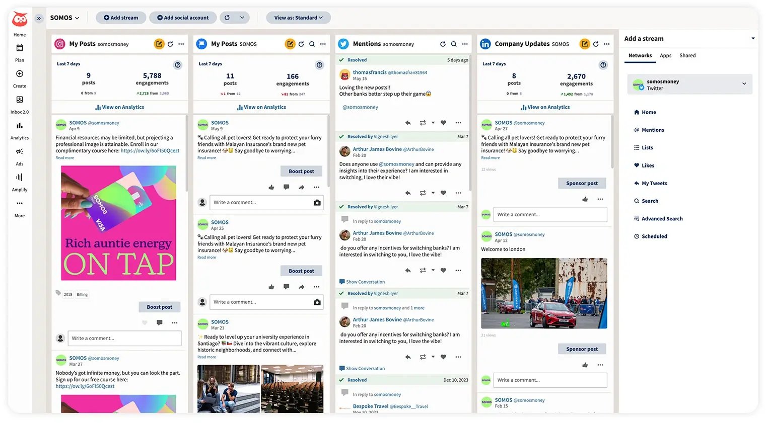 Hootsuite is a social media management tool with scheduling, content creation, analytics tools, and social listening capabilities. Even those with beginner knowledge of social media marketing can manage social platforms and optimize audience engagement using this tool.