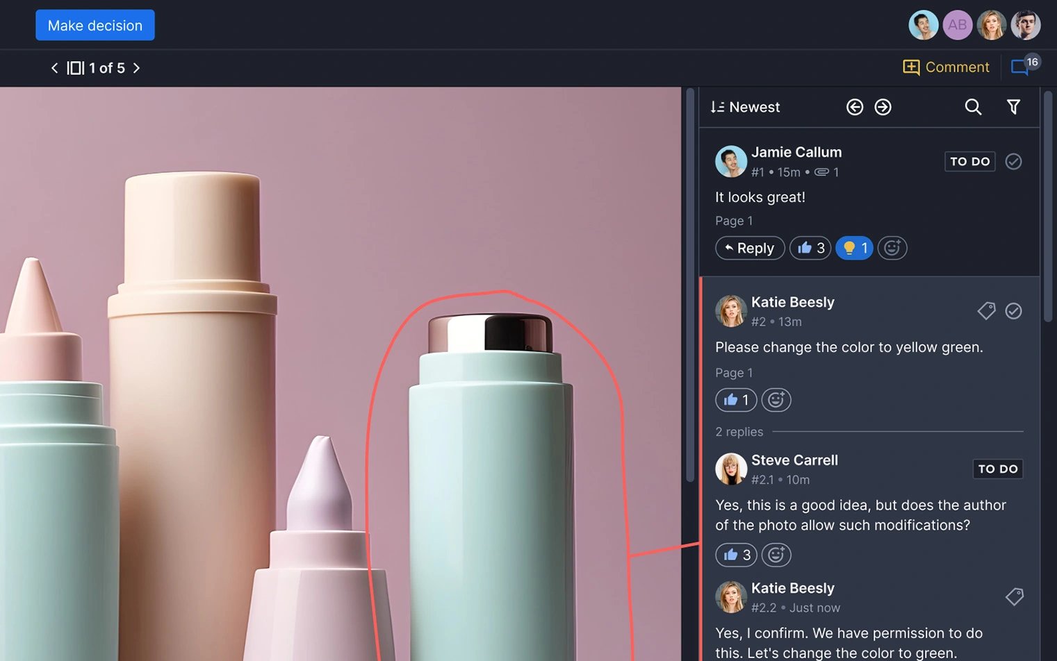 As you make your way through the feedback, check in with your design team regularly. Track your changes to ensure everyone involved is on the same page every step of the way.