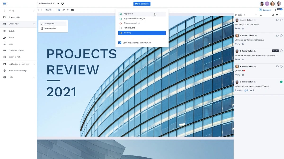 In addition to expanded media support, the new viewer now also offers a light mode interface. For teams that need to review lighter colored content, light mode helps reduce color contrast to maintain a consistent viewing color. You can toggle between light and dark modes in the 'Proof Viewer Settings' section of the viewer menu.