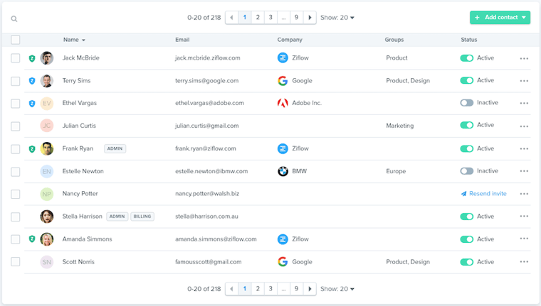 The People view also lets you quickly navigate to a set predefined filters, allowing you to see all contacts across accounts, users in your account, users who are also in other Ziflow accounts, as well as guests that you or others have invited.