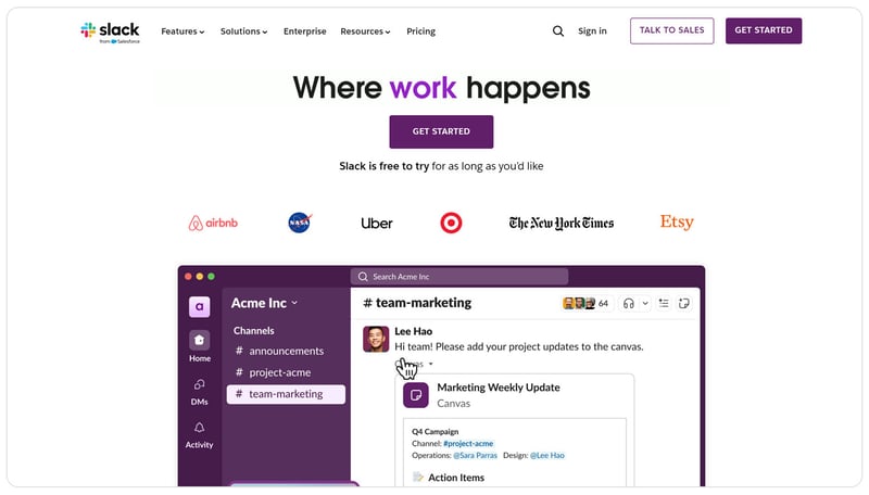 Slack is a powerful collaboration tool that facilitates one-to-one and team communication. Its channel-based structure helps organize conversations by project or team, ensuring that collaboration is focused and efficient. Whether your users need quick messaging, video calls, or file sharing, Slack keeps everyone connected and aligned.