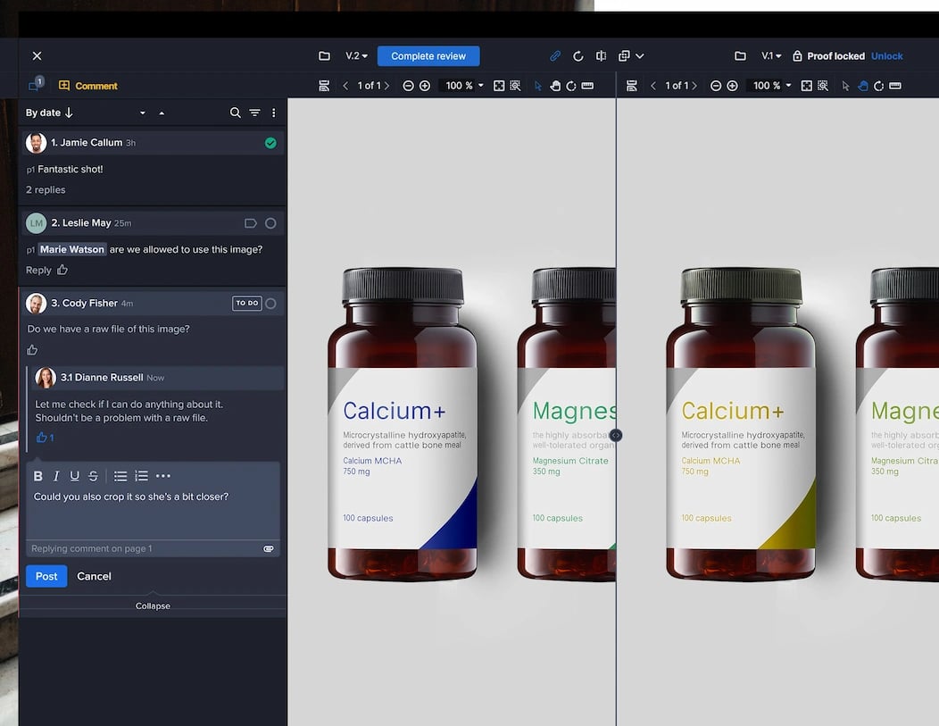 By comparing proofs right down to the pixel level, you can identify minor design issues or compare copy tweaks down to the last comma. Plus, this documentation can also help you prove compliance with marketing regulations.