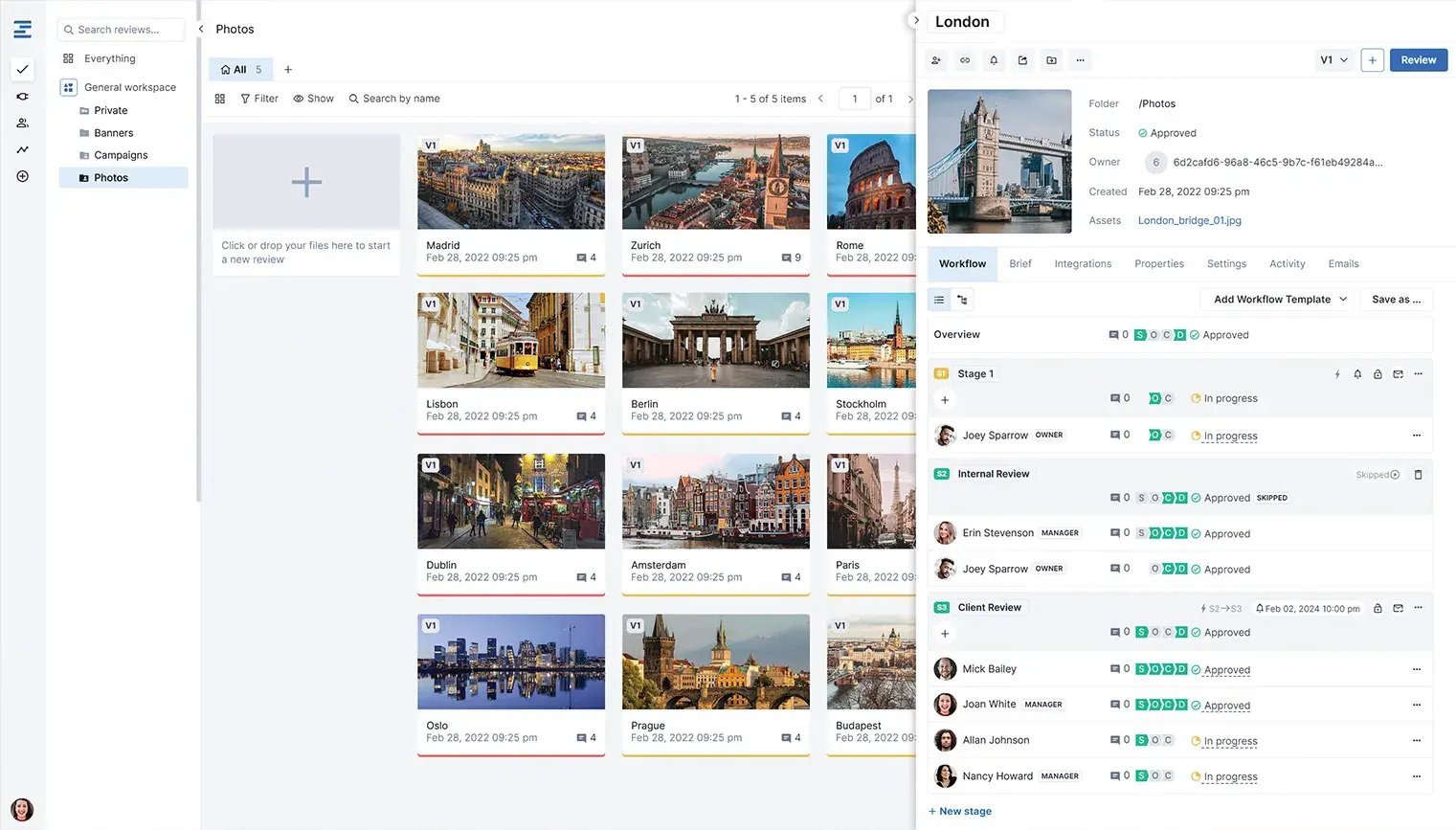 Streamlined review and approval of assets