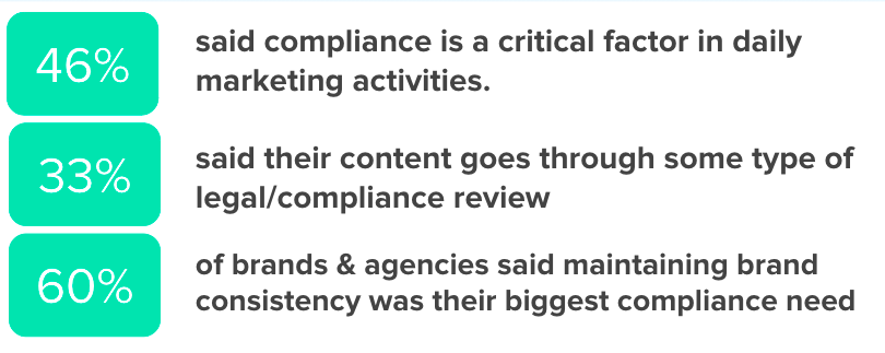- 60% of brands and agencies said that, within compliance review, that maintaining brand consistency was their biggest compliance need.