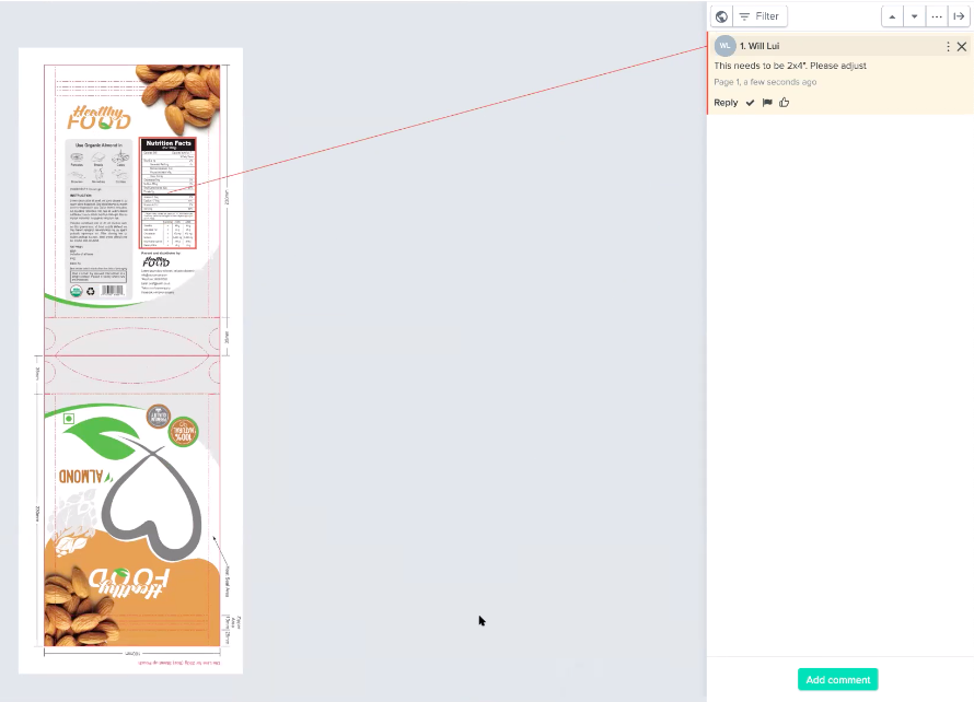 This also saves a lot of time for your design team. Your designs or reviewers don't need to pull a file out of the review, drop into a production tool like Photoshop or illustrator to use grid lines and measure it for regulatory size or placement requirements.