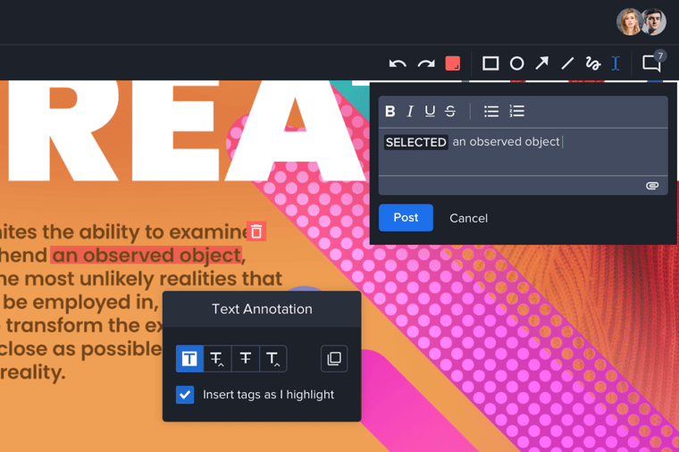 Without an easy way to visually point to or highlight what they’re talking about on a piece of content, they end up in an endless back-and-forth that’s as confusing as it is inefficient. And even for those teams that do use a tool with markup features, the markup process still feels clumsy, slow and frustrating because the tools are so limited.