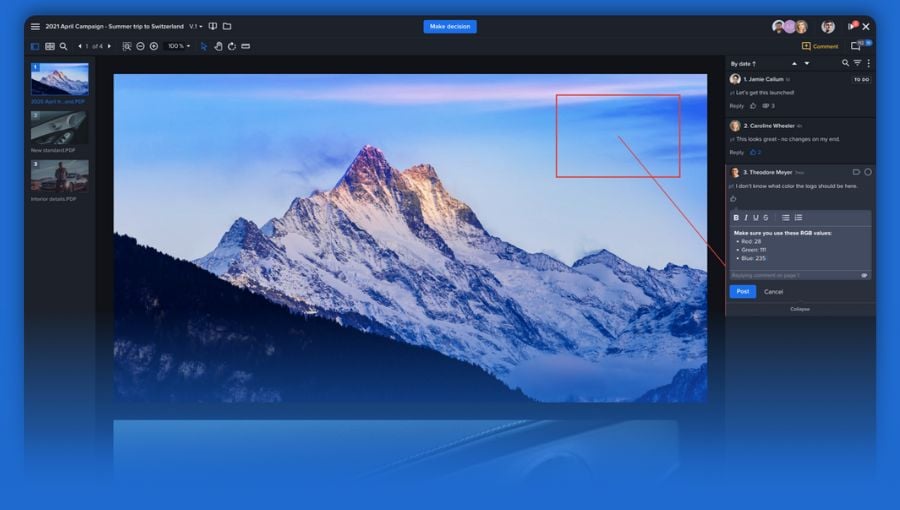 Maybe you’ve been reviewing creative with a PDF or image preview tool whose clunky interface makes it hard to keep your content in focus. Or maybe you’ve been printing your creative out for review, spreading physical copies of it out across a desk and getting lost in the process.