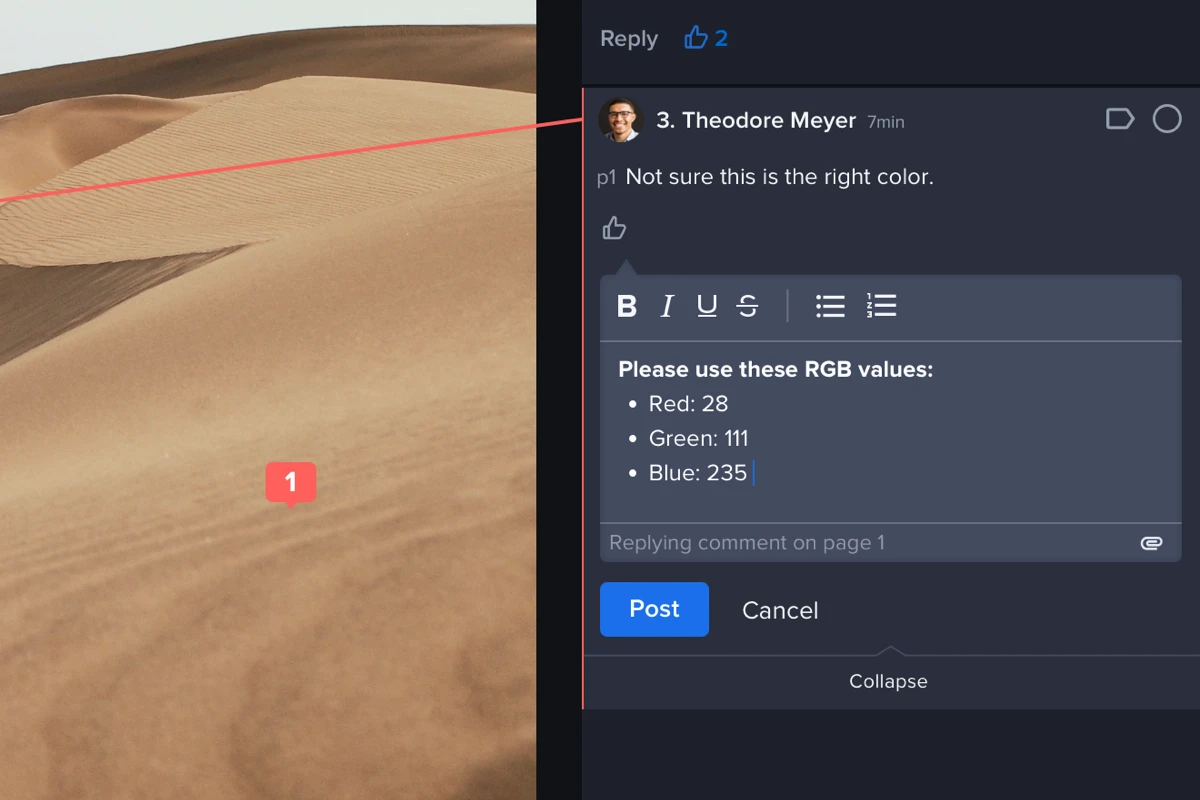 Rich text comments: To help your team improve collaboration, the new viewer also allows you to craft comments with Rich Text. Communicate exactly what your team needs to know by bolding, italicizing and striking text out, creating bulleted lists, and more.