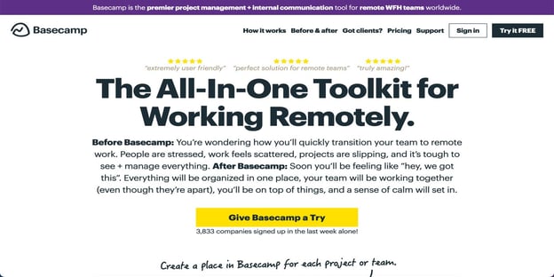 Basecamp promotes the fact that it was designed for remote teams — the Basecamp team has been operating remotely for 20 years. This platform offers detailed and high-level views of all projects.