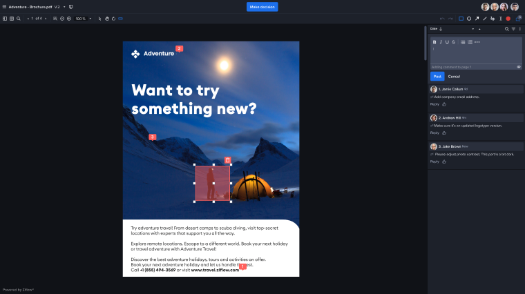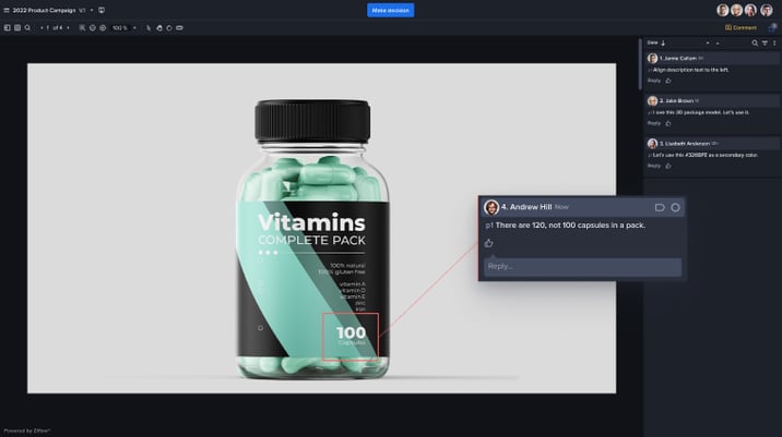 Creative teams rely on annotations to provide precise and actionable feedback on design elements. Some of these action items may include refining color choices, suggesting layout tweaks, and revising copy. Collaborative tools like Ziflow help teams review and update designs in real time, reducing back-and-forth and miscommunication.