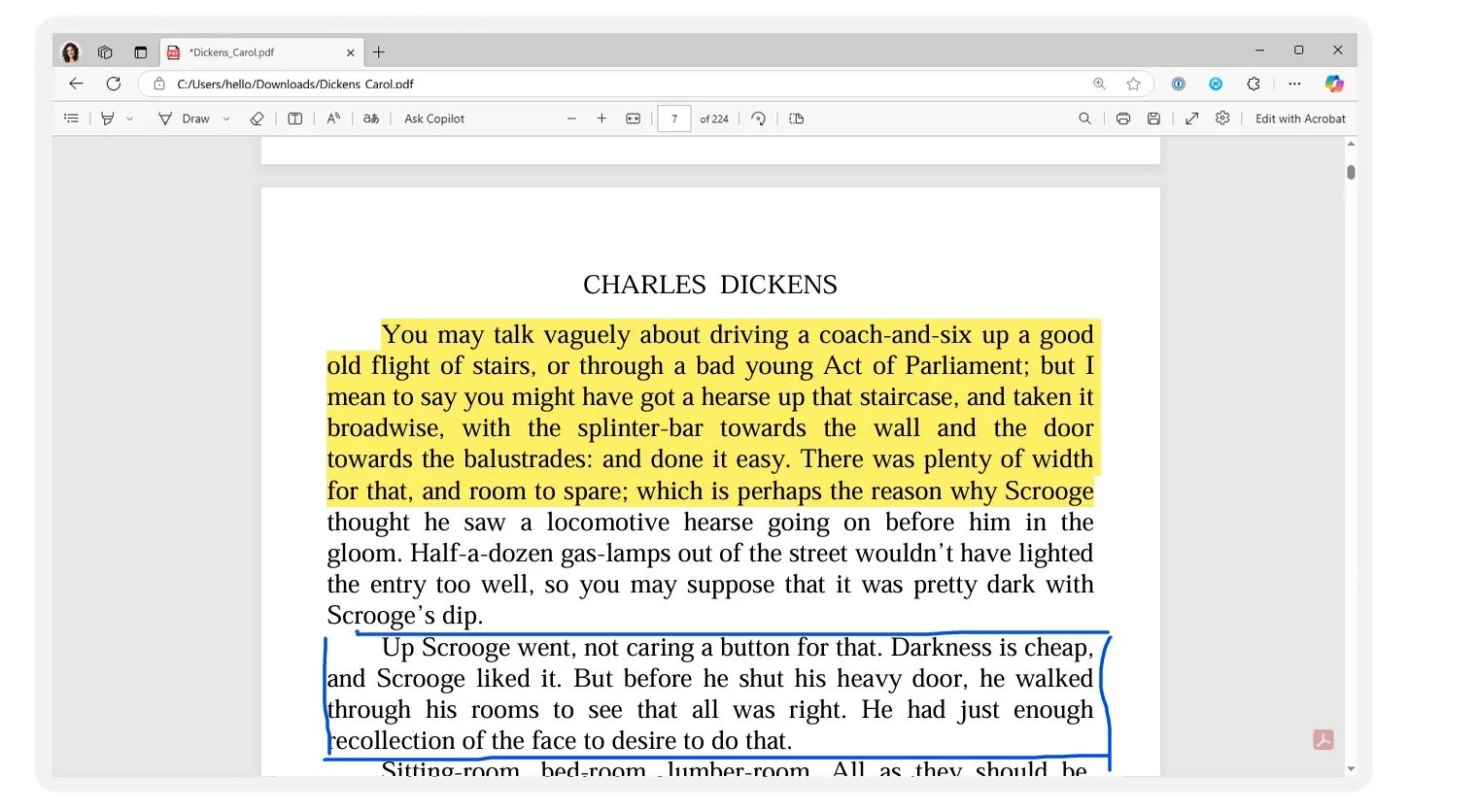 For Windows users, Microsoft Edge comes equipped with a built-in PDF viewer and annotation tools. The browser’s online PDF editor lets you add highlights, notes, and drawings without installing extra software on your computer. The downside is that it doesn’t offer dedicated features to streamline review and approval processes.
