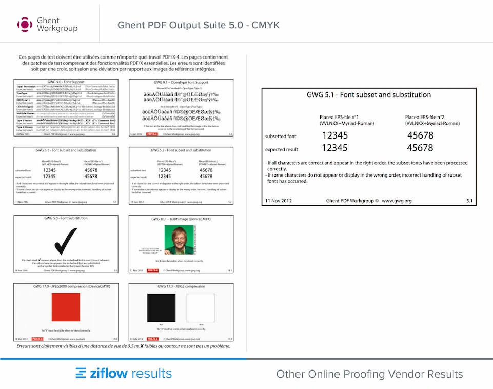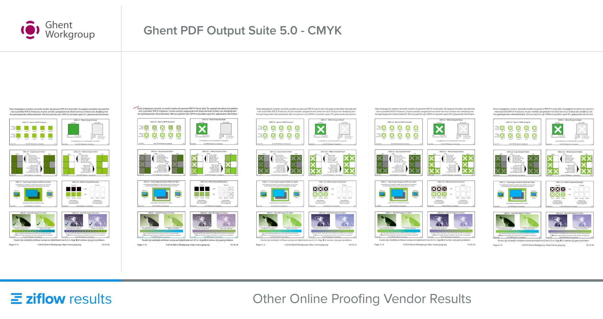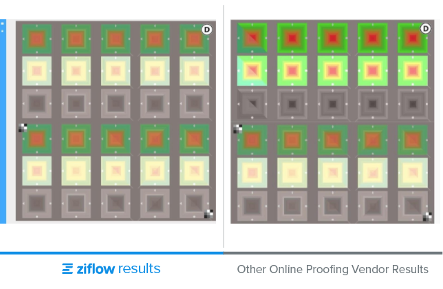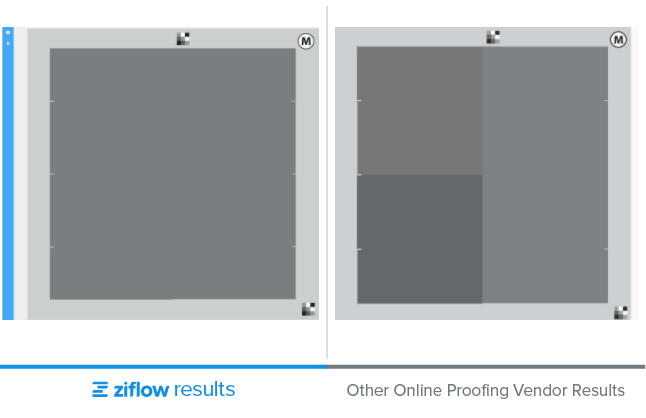 Probably one of the most important tests is color reproduction. Here we’re showing how four vendors’ results compare to Ziflow and that they all fail this test.