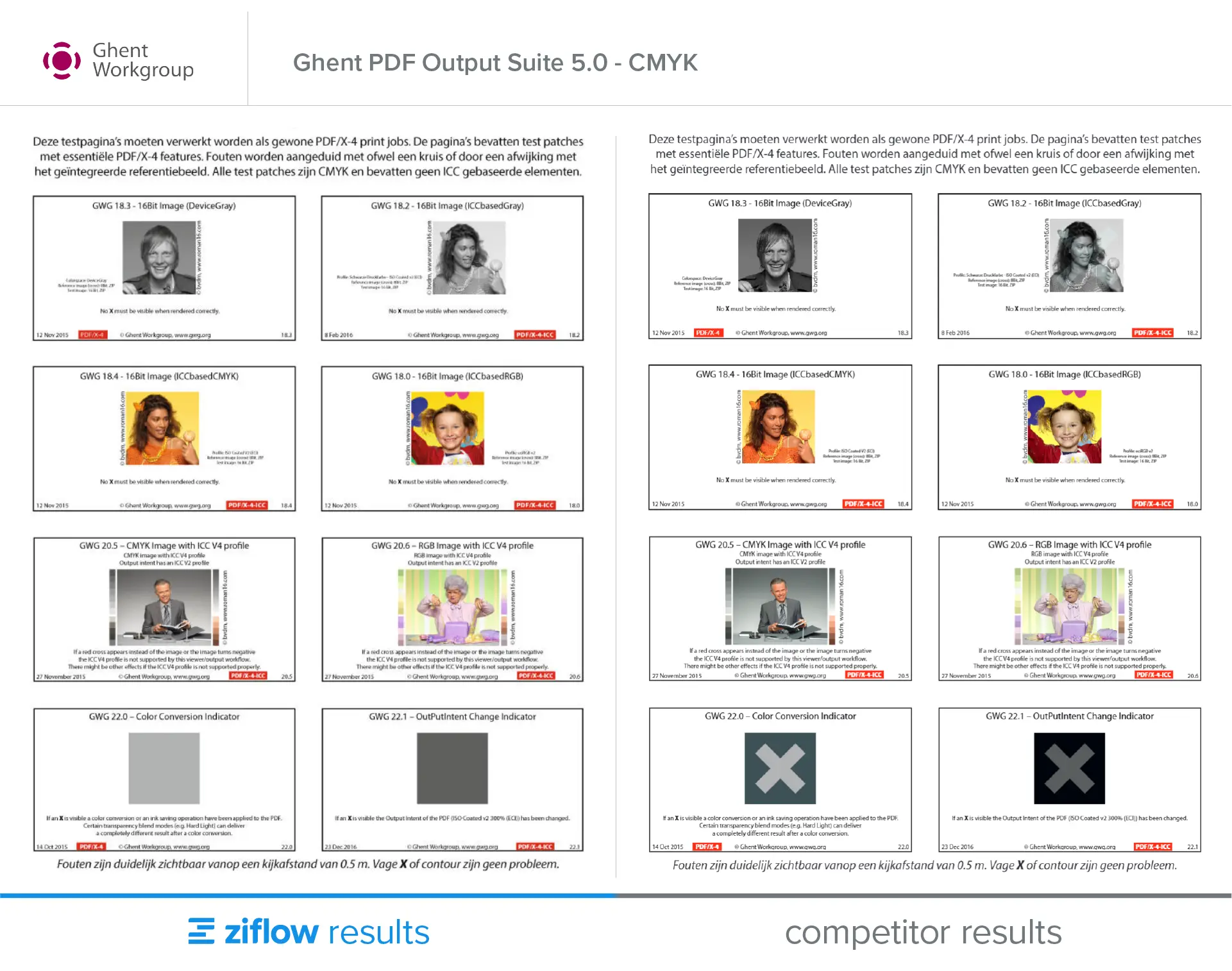 - First, we used a test file from the Ghent Workgroup. The Ghent Output Suite was created to test the processing PDF files in the graphic arts industry. These patches can be used by end users of graphic arts equipment as well as developers of applications that handle PDF files.