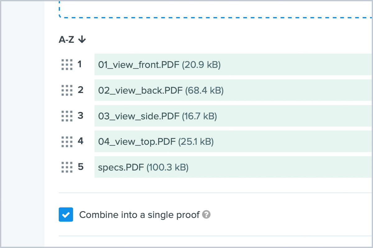 To help users organize uploaded files on combined proofs, we’ve added a button that enables reviewers to quickly sort the proof upload list alphabetically.