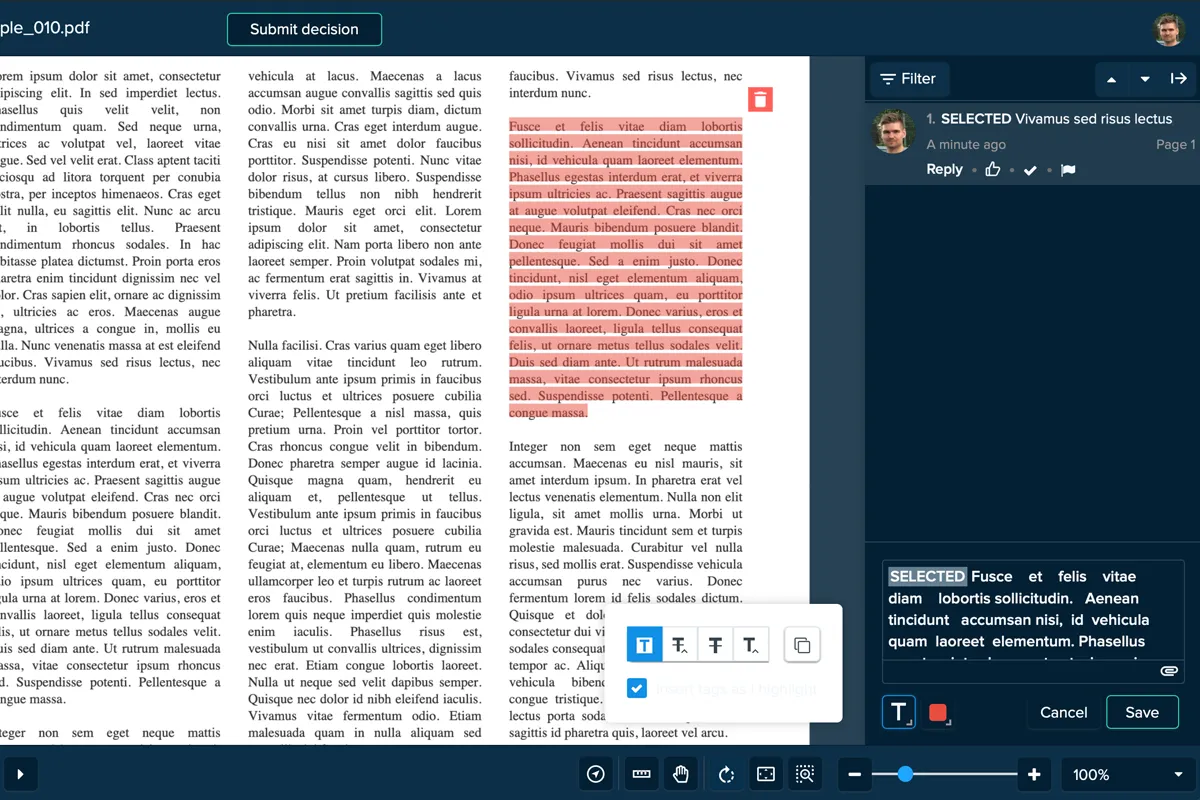 Achieving precise text selection in an online proof viewer is no mean feat. Ziflow has enhanced its proof viewer to improve the user experience and allow for better selection of paragraphs when using the text annotation tool. This is especially key for proofs with a large number of paragraphs or with a copy layout broken up into multiple columns. Note that Ziflow already allows reviewers to select multiple strings of text in a single comment.