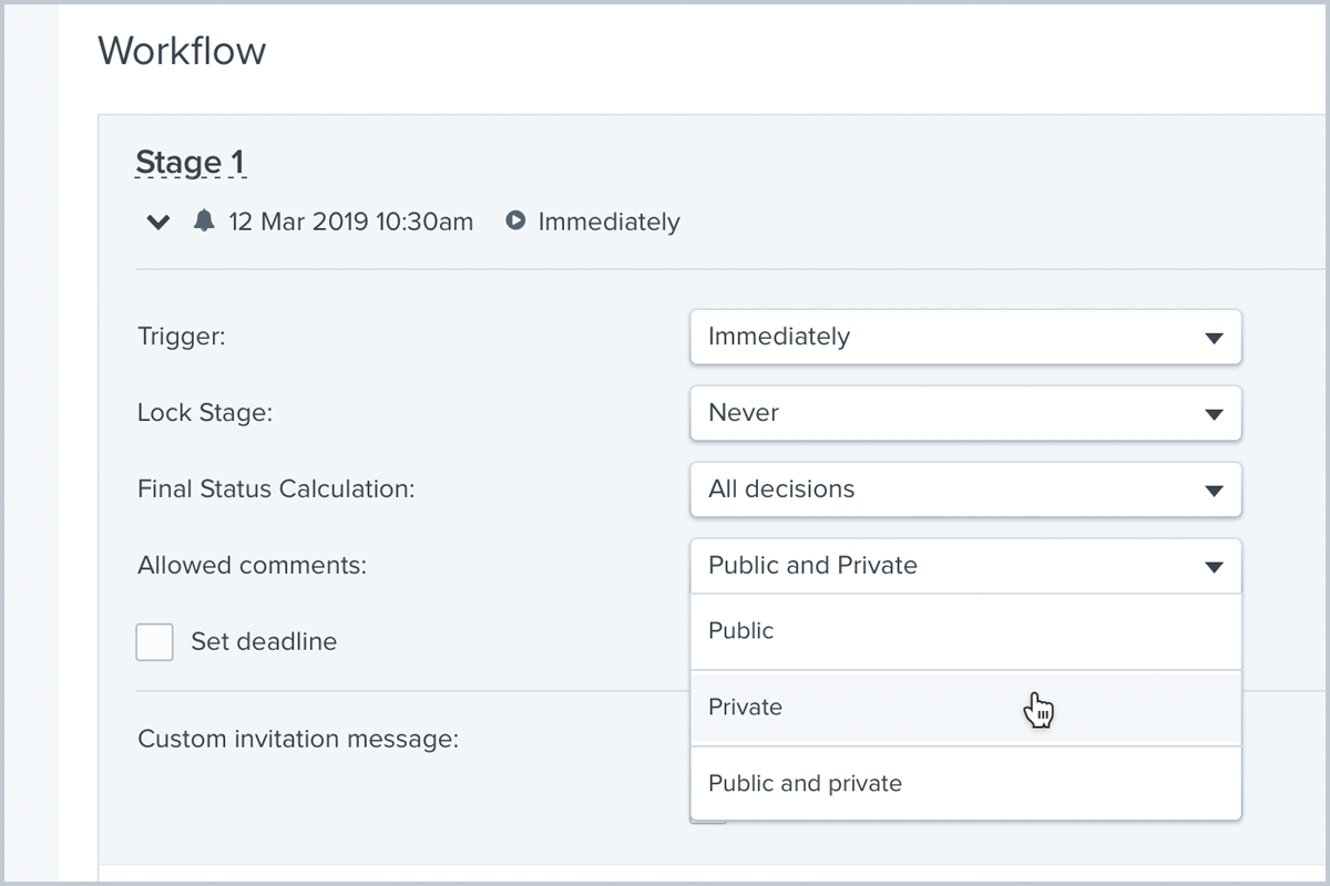 Proof Managers and Admins now have the ability to force all comments on a stage to be private. This can be set when creating a proof or alternatively specified on the Automated Workflow Template.