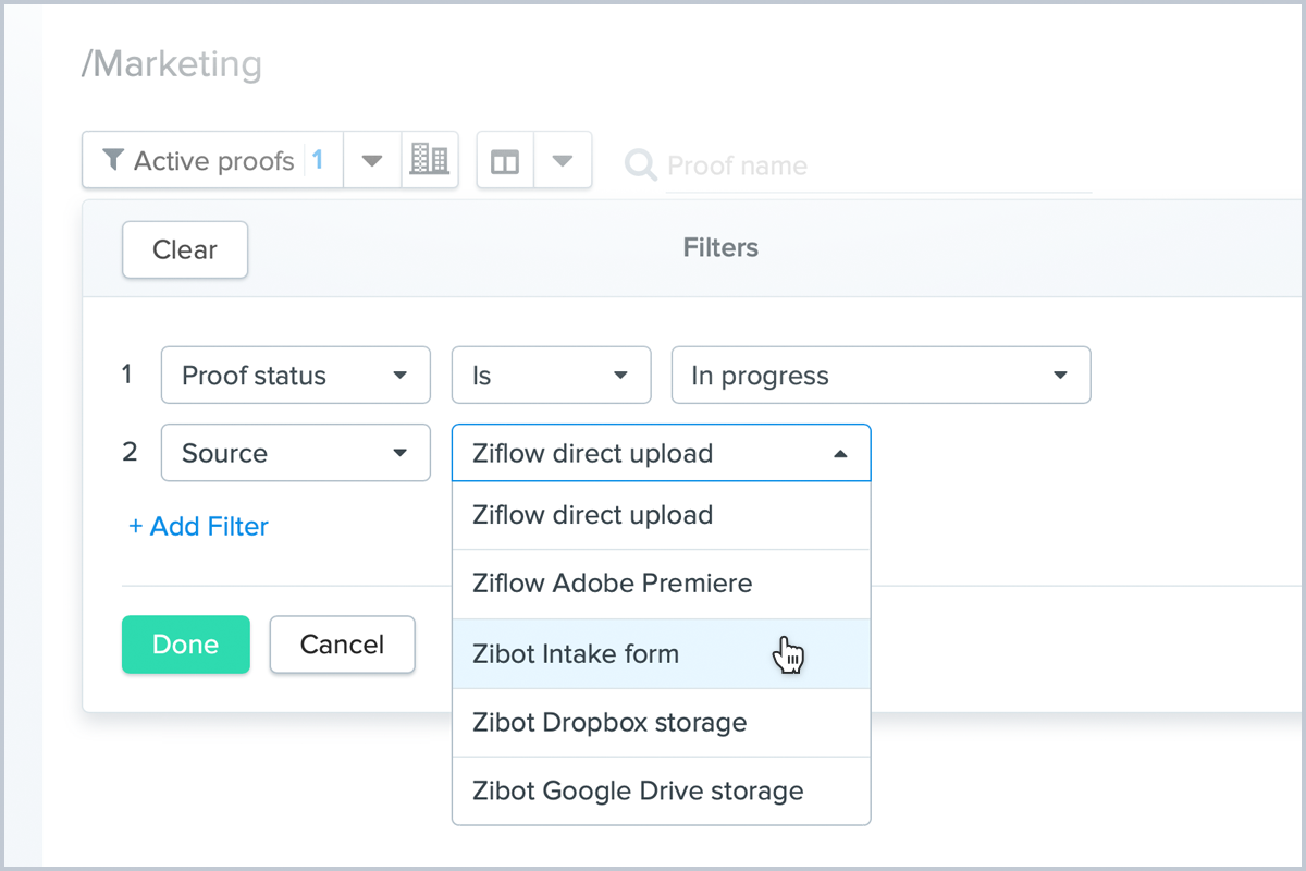 We've added several new options to our Smart Filter capability. It's now possible to create a Smart Filter by source. For example, you can filter proofs created by: