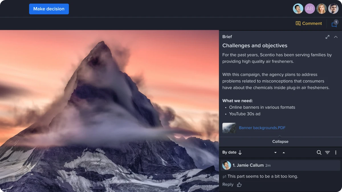 Proof briefs stay pinned at the top of the comments list to be easily referenced at any point in the review process. Learn more in our help center.