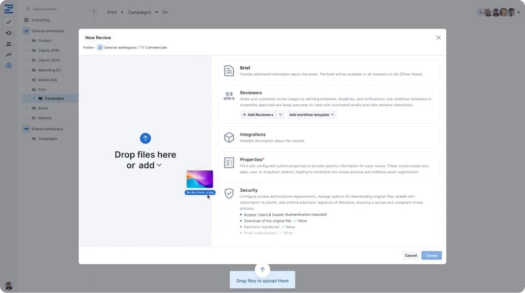 - Flexible, configurable workflows for complex creative reviews