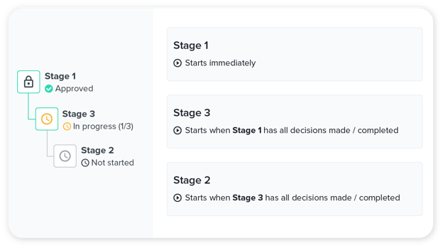 - Sequential reviews: Reviewers look at an asset one at a time. This is a great approach when thoroughness is the priority, as it allows each reviewer to build off the last's feedback.