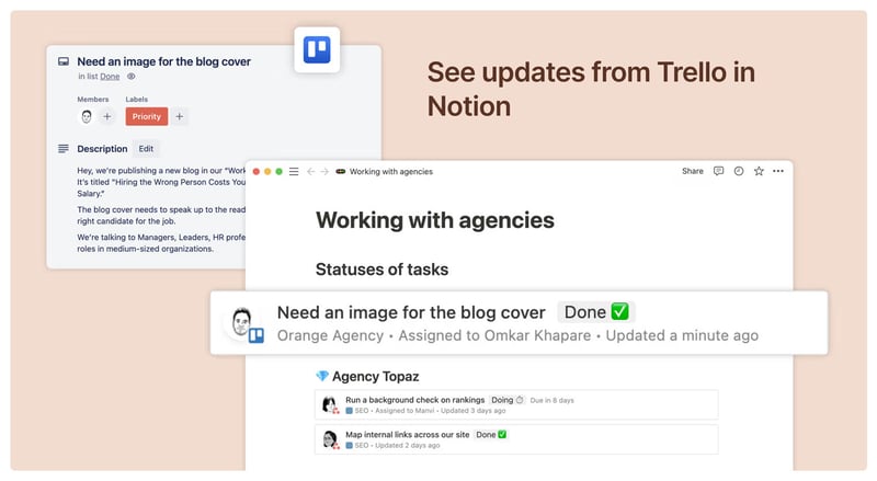 The Notion Power-Up bridges the gap between task management in Trello and knowledge organization in Notion, offering a powerful synergy for creative teams. By syncing Trello boards with Notion pages, this integration allows users to access real-time insights into project progress while centralizing documentation, brainstorming, and strategic planning in one accessible location.