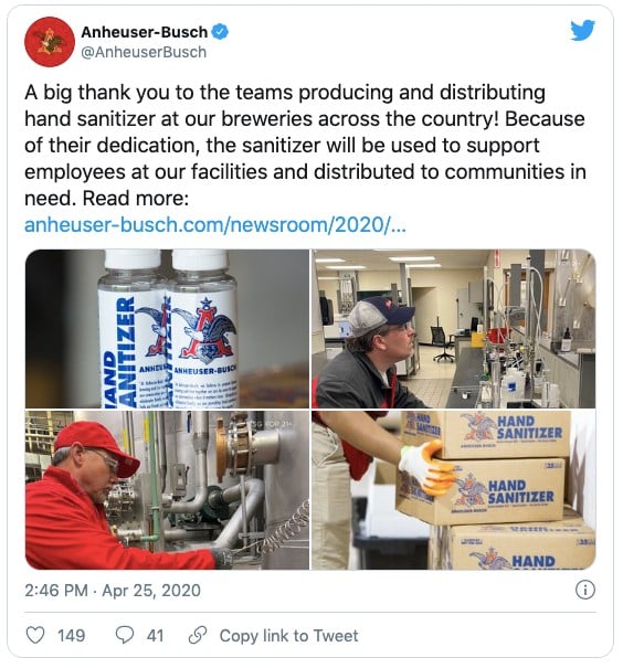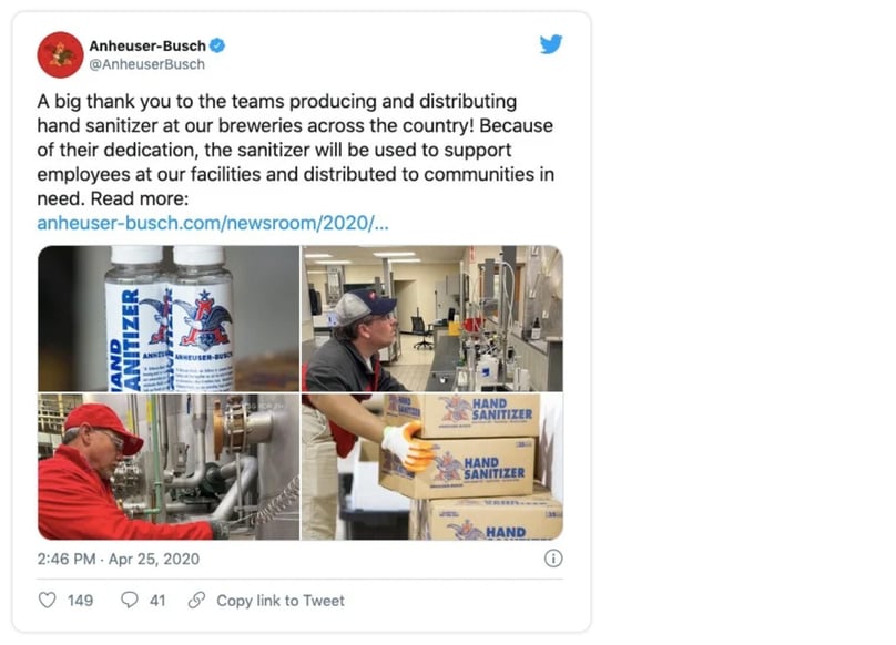 After they started making hand sanitizer, news networks, and newspapers from across the country picked up the story. Anheuser-Busch responded to the media attention by emphasizing they were there to help.