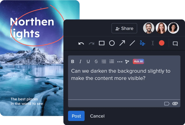 Discussion tools help your team stay accountable and on the same page during asset reviews.