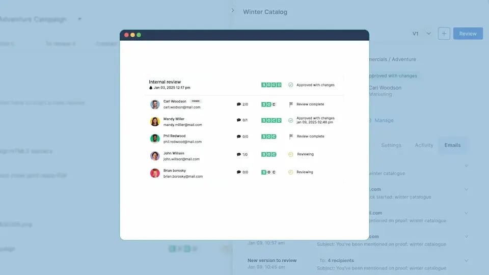Track where every asset stands with a context-aware dashboard that provides immediate clarity and encourages accountability among reviewers.