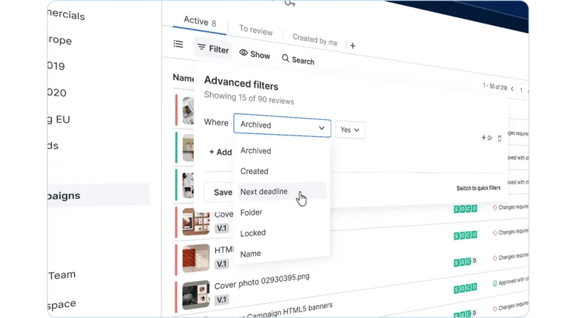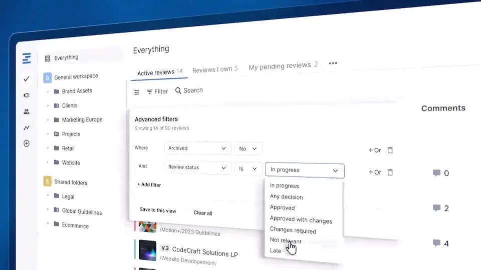 Keep projects organized with folders, tags, and tailored filters, allowing quick access to active and archived proofs.
