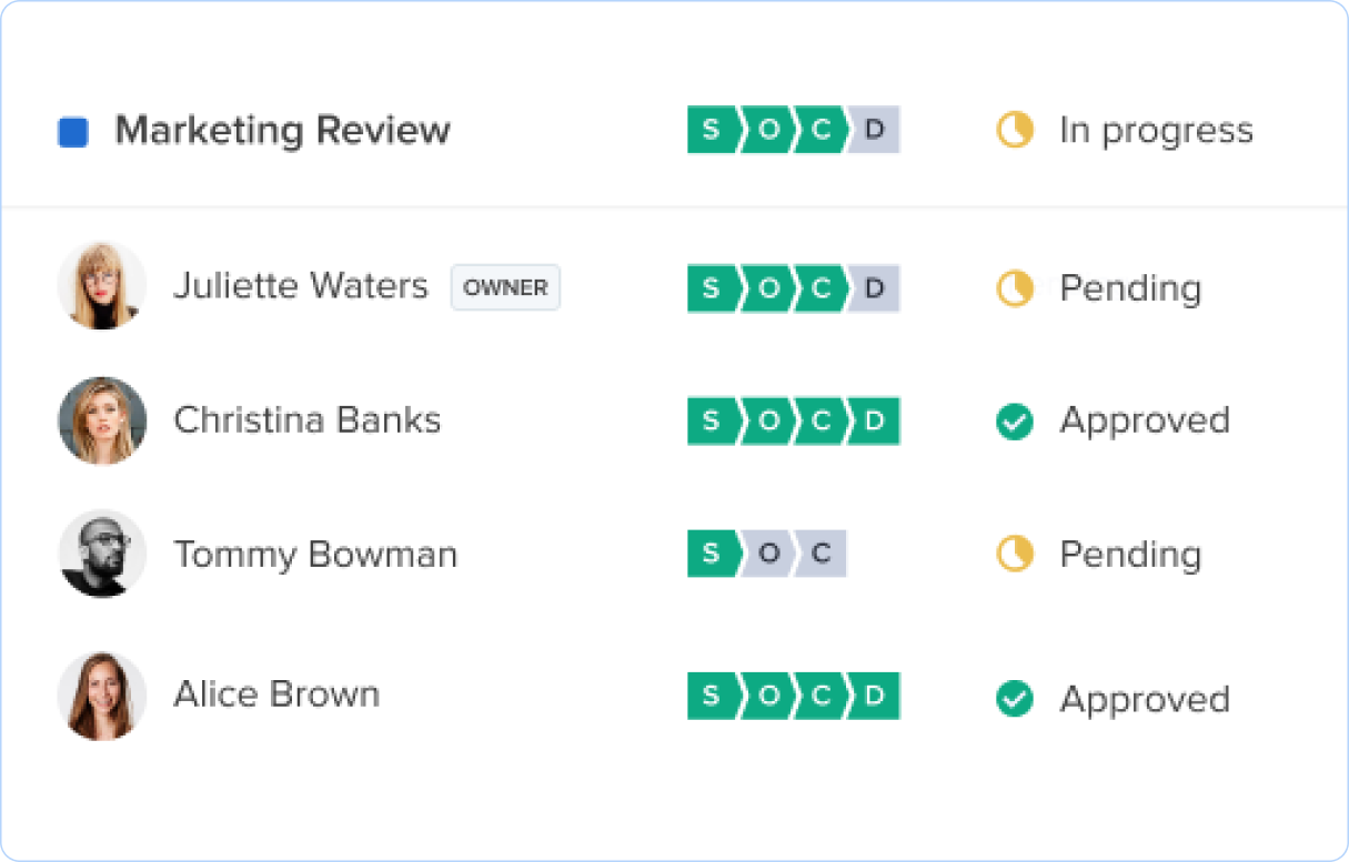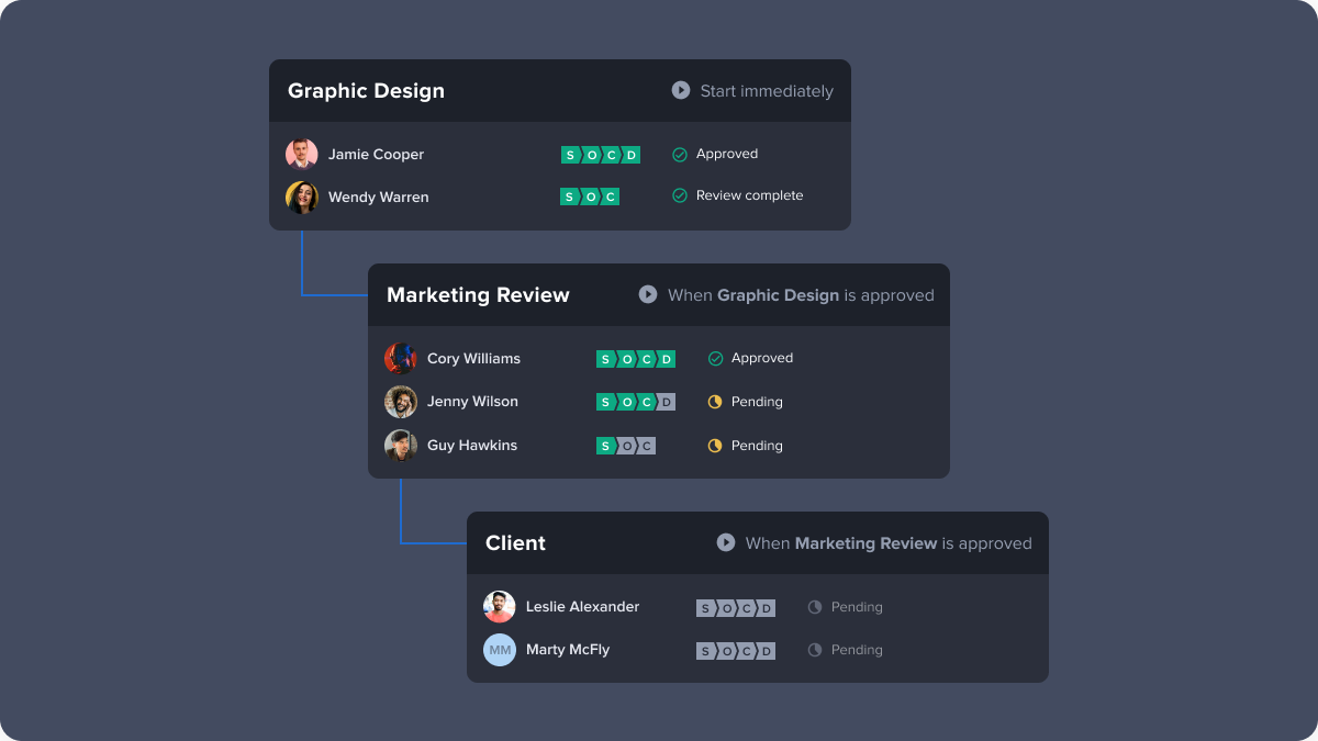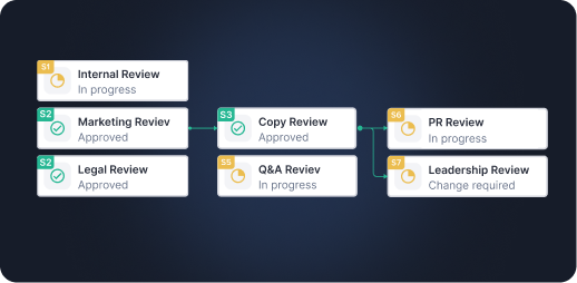 Automate rules and steps that guarantee each asset follows a complete review, from initial submission to final sign-off.