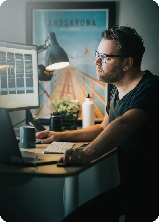 Video motion specialist creating and editing content in a program on a desktop pc
