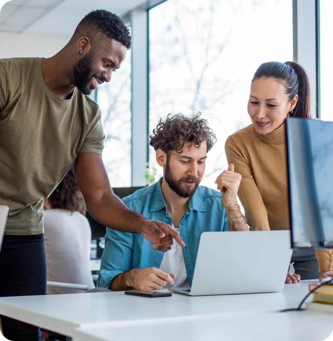 Team of creatives discussing on a project and proofing