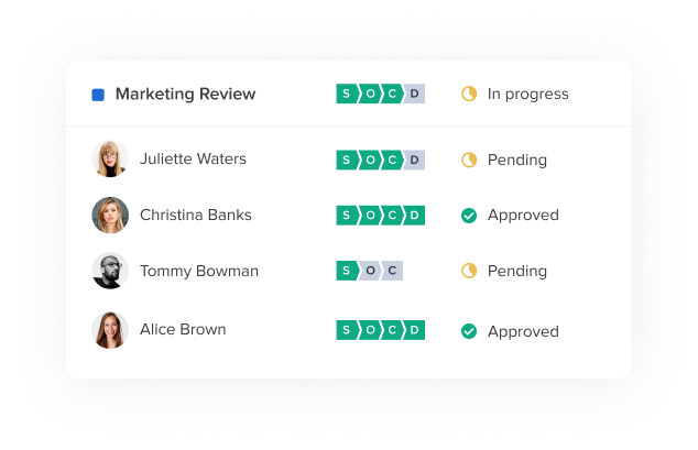 By automating your review process, the next stakeholder can be automatically pinged when it’s their turn to review. They can even get reminders as deadlines approach.