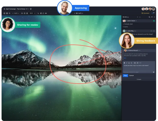 Empower stakeholders to leave feedback on all campaign assets individually and simultaneously, streamlining multi-asset approval processes.
